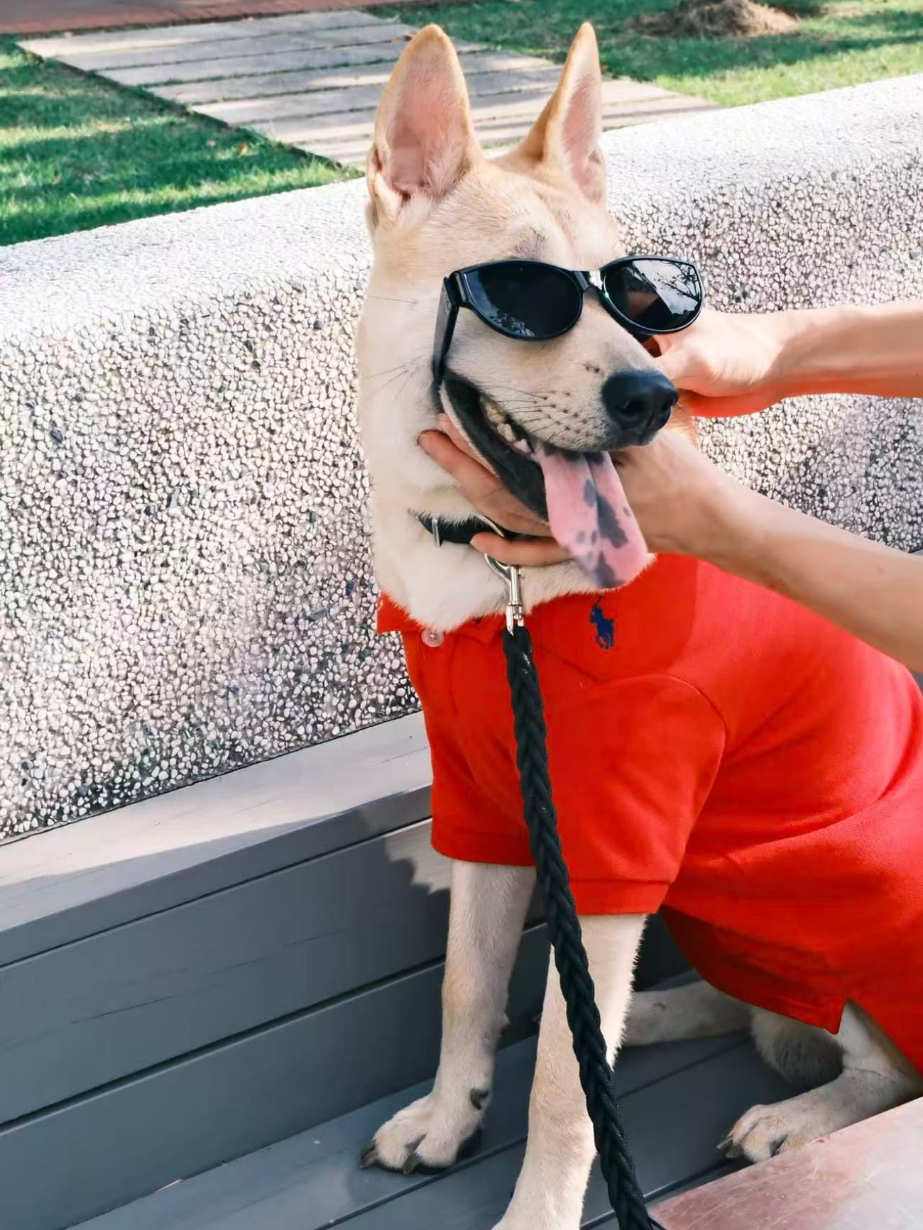 Excellent summer outfit. The polo is well-made, and the material is breathable, which is important for my dog.