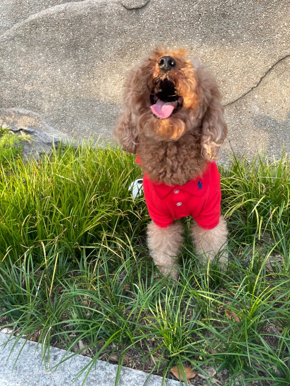 This dog is rocking that polo shirt! Too cute for words!