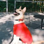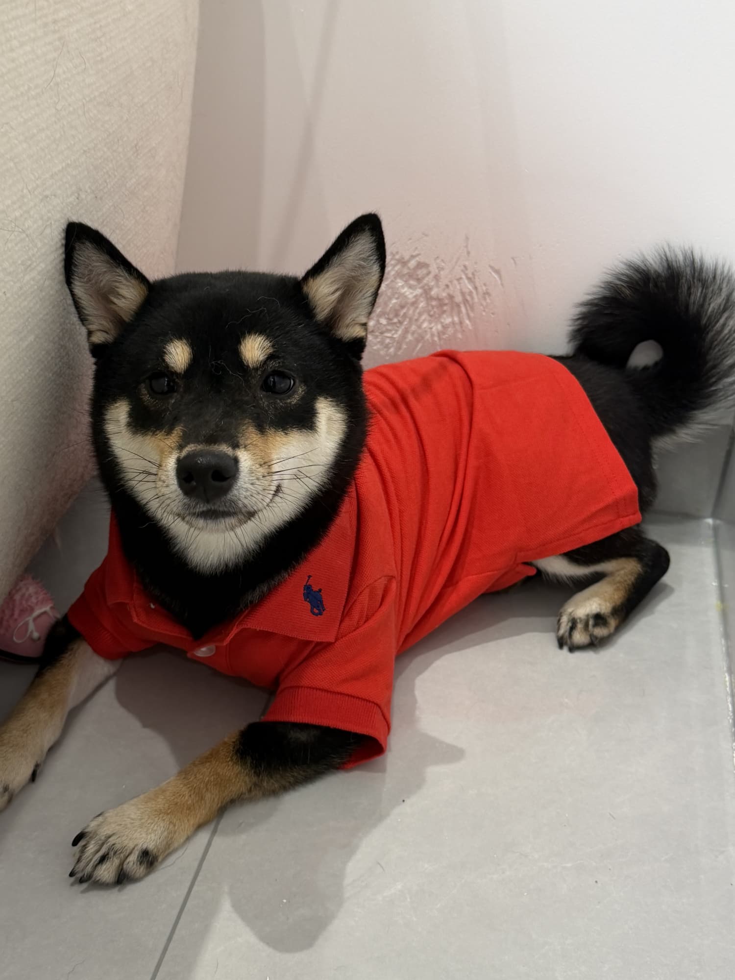 Looking very dapper in red! What a handsome Shiba.