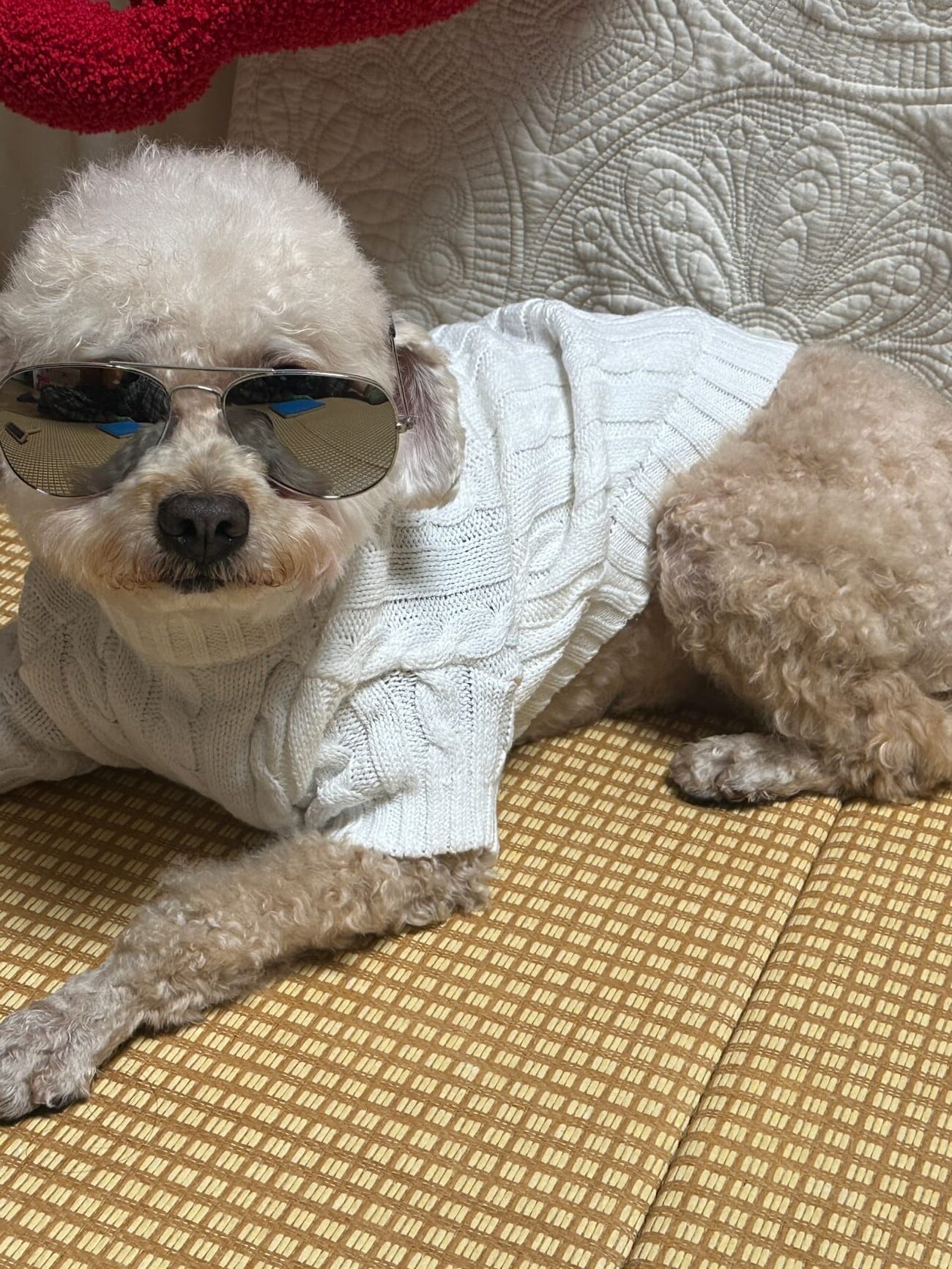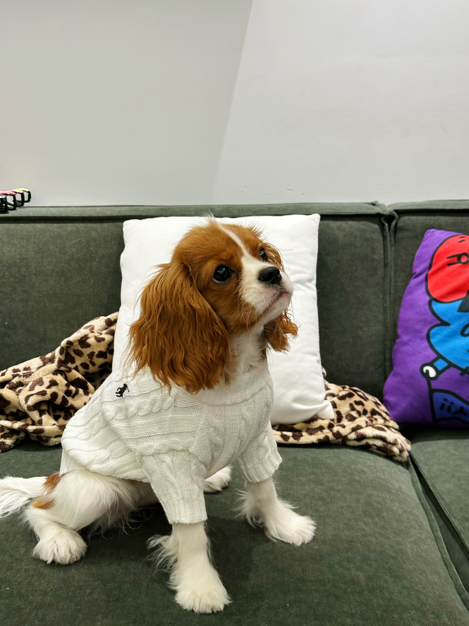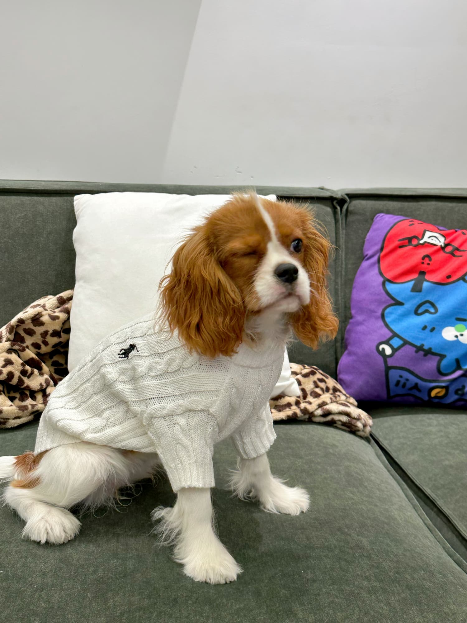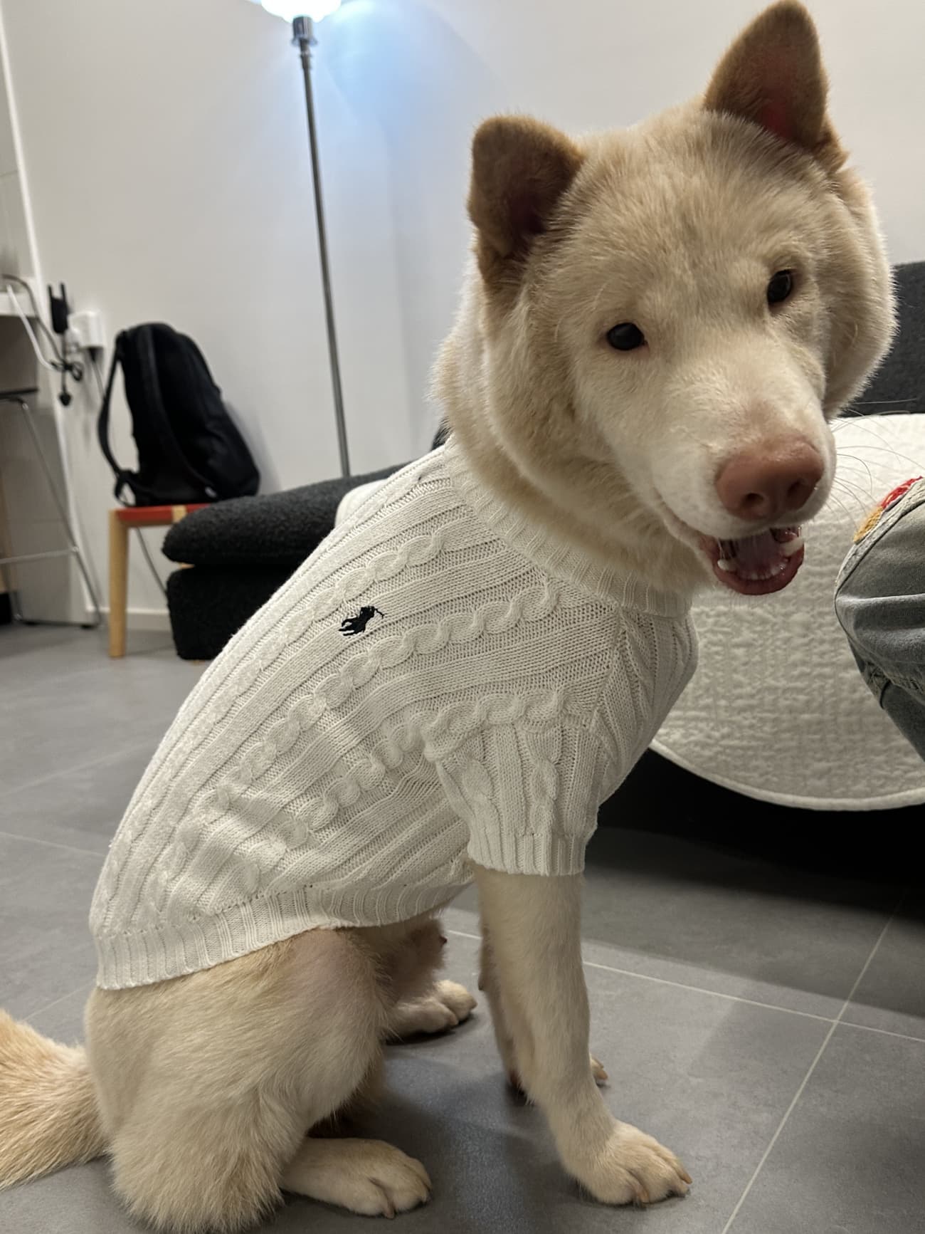 Oh my gosh, this sweater is incredible! It’s so incredibly soft and cozy, perfect for chilly evenings. My pup looks like a little angel in the white cable knit. It washes well, too! 10/10 purchase.