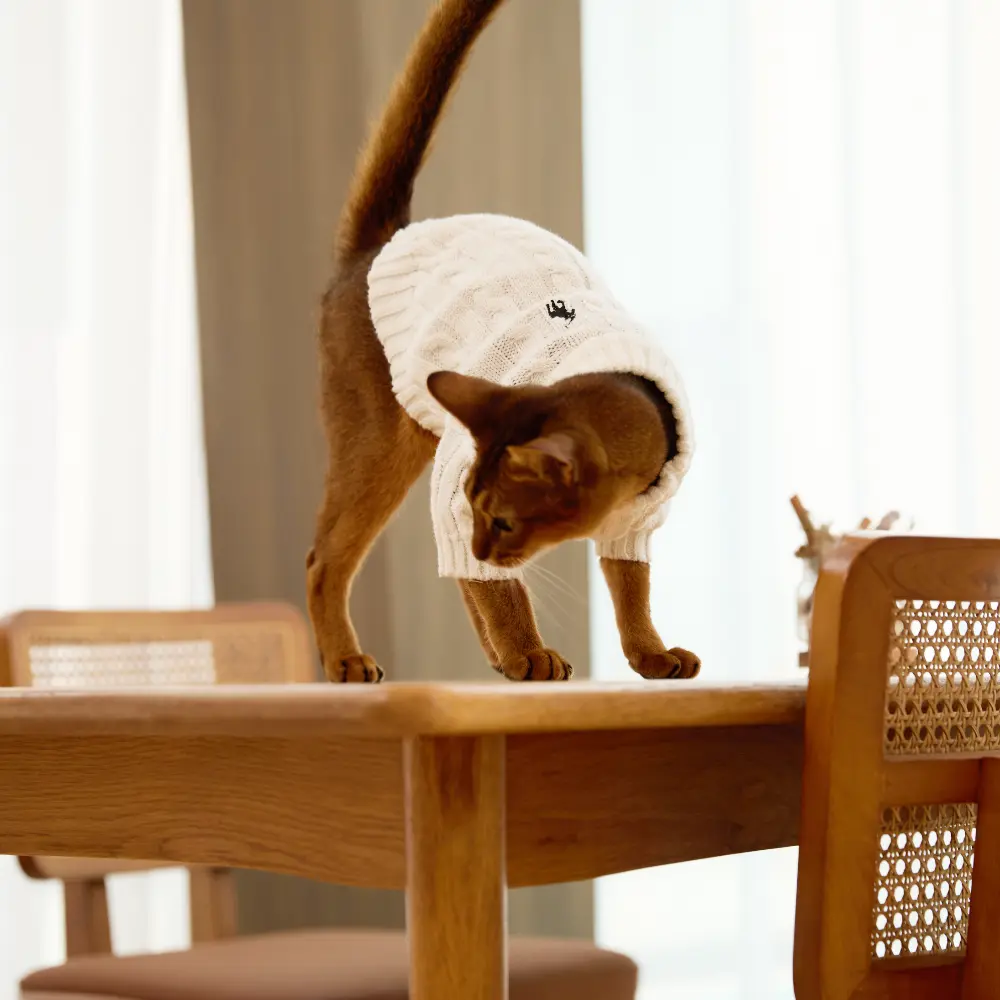 - Drawing on years of experience in high-end apparel, we’ve brought the same attention to detail from human fashion into this pet piece. From the choice of materials to the tailored silhouette, every element follows the standards of classic design. Crafted with a cable-knit texture, it offers a snug yet breathable fit — refined, comfortable, and timeless.