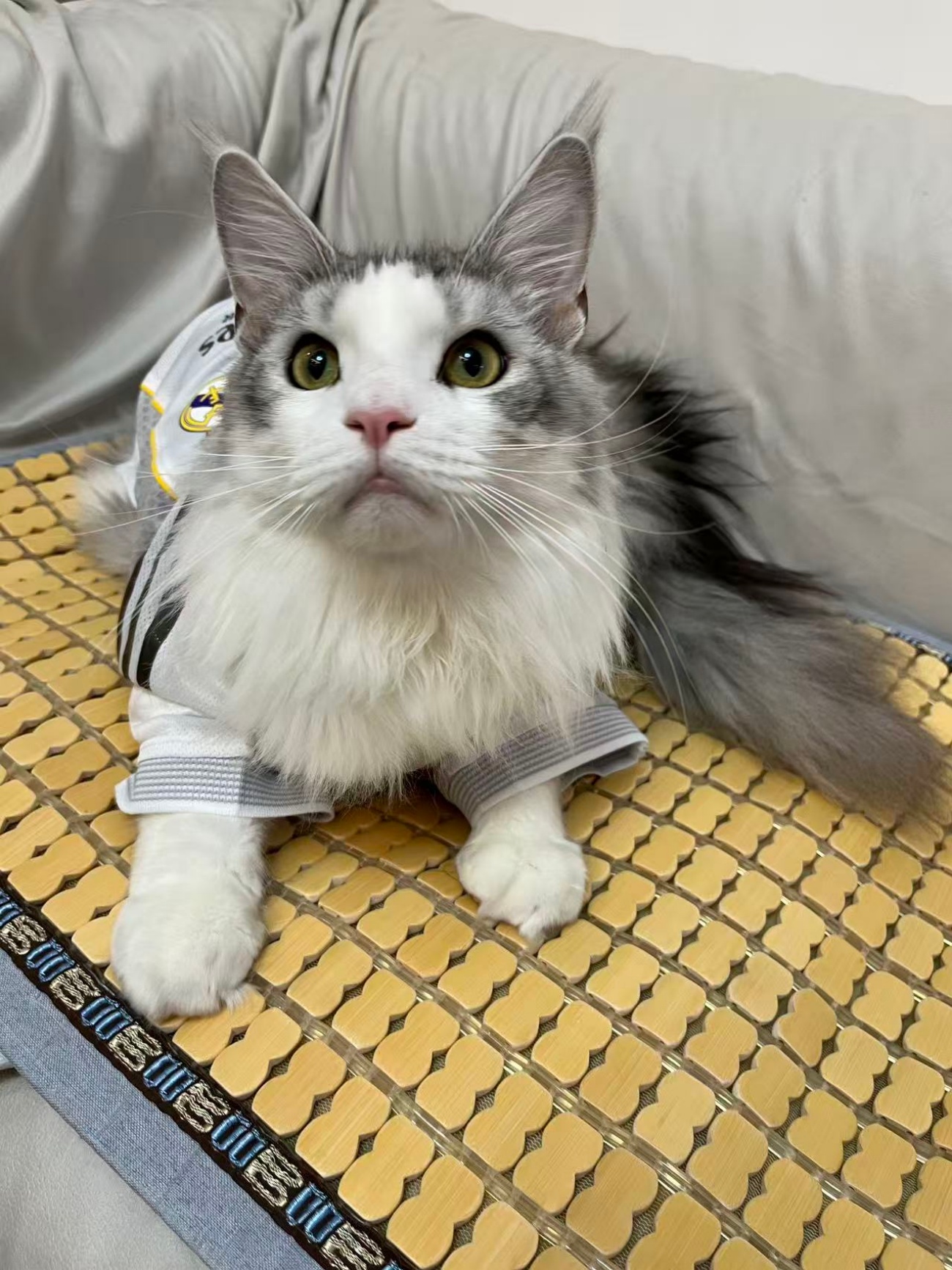 Wow, what a majestic cat! Seriously, the pose and that outfit are everything. Looks like a total celebrity on that straw mat! Gorgeous eyes too!