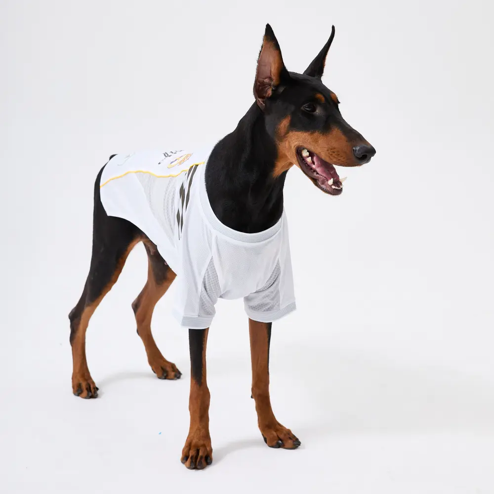 Inspired by the 25/26 season home kit of Madrid’s royal champions, this premium pet football jersey brings match-day spirit to your furry friend. Made with player-grade breathable fabric and a non-slip inner collar, it stays comfortable and perfectly in place as your pet runs, jumps, and cheers.