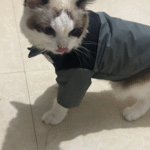 Ready for the outdoors! Love the serious look combined with the tiny blep. This cat has the best attitude