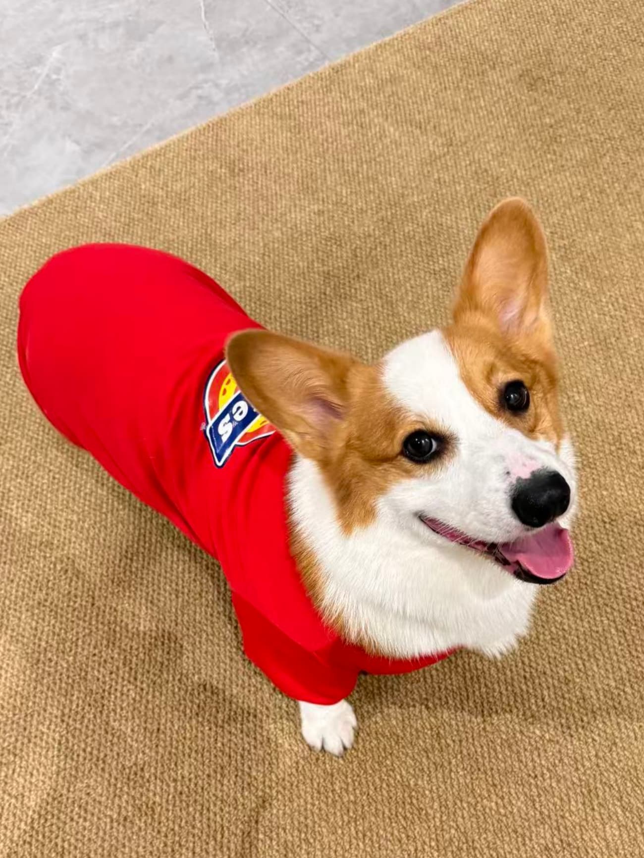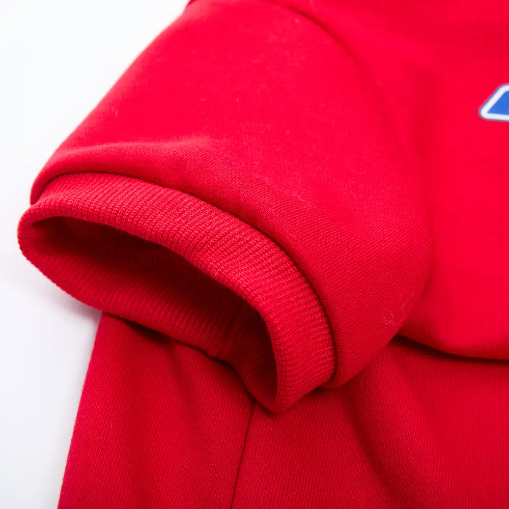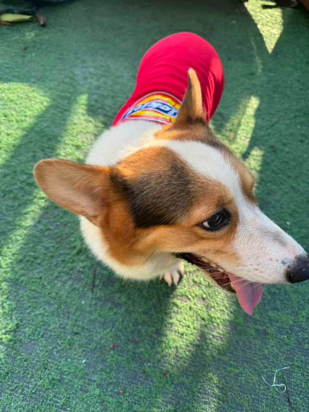 Great fit for a Corgi! This is exactly the kind of casual wear I wanted for him. The red is vibrant, and the material is soft yet strong. It keeps him warm, and the short sleeves don’t restrict his little legs when he runs.
