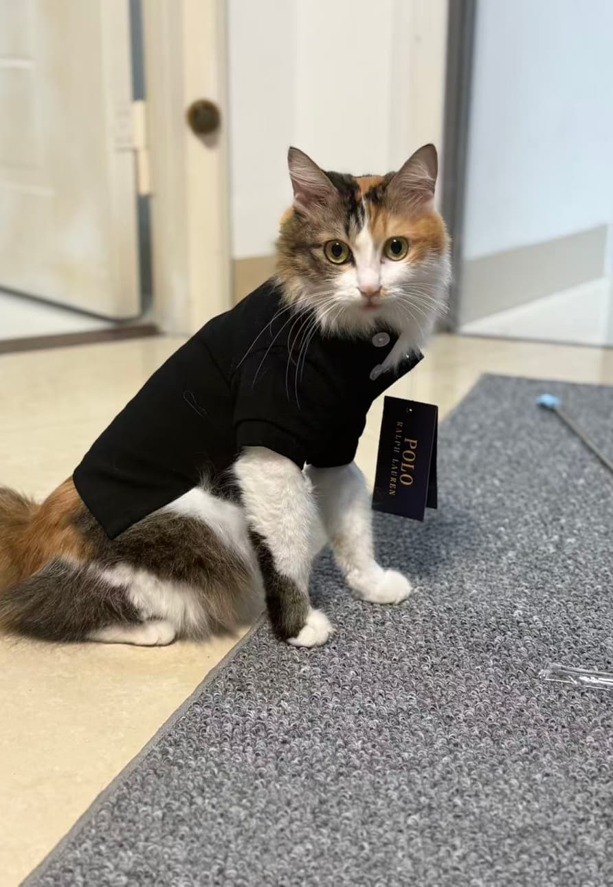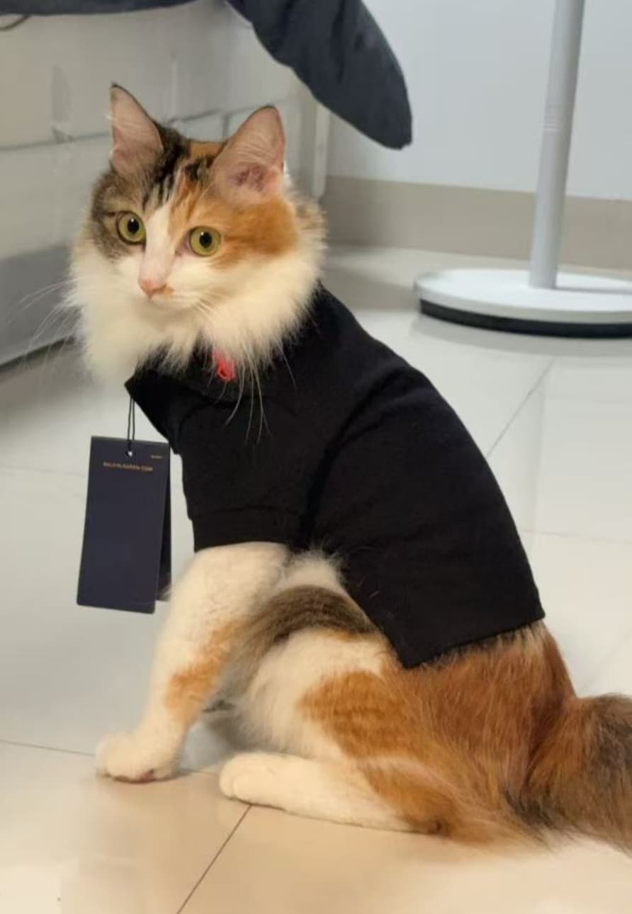 Didn’t expect it to look this cute. The black shirt makes my cat look like a tiny model!